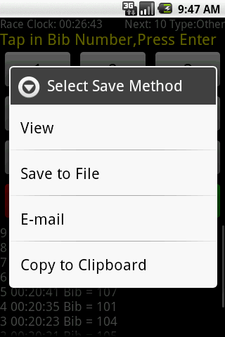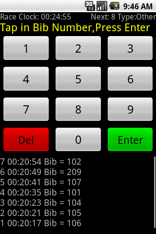 Aplikasi ini membolehkan anda mengetuk dalam nombor perlumbaan (nombor BIB) pesaing yang mereka lalui dan mengeksport hasil perlumbaan melalui e-mel kepada penganjur perlumbaan.