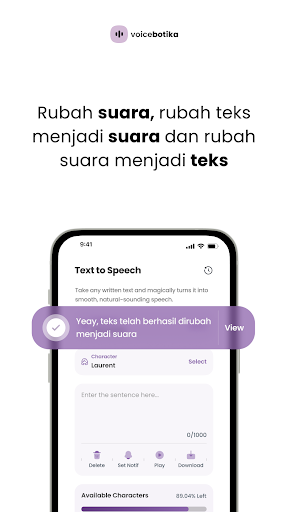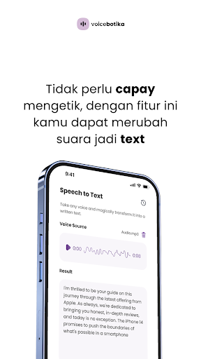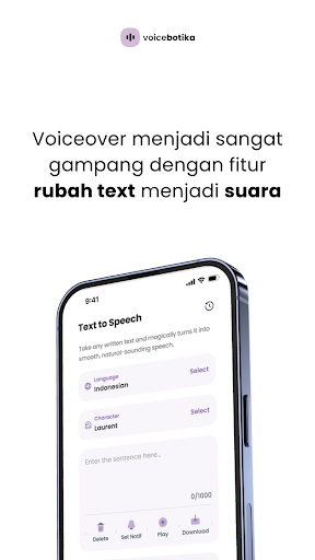 Teks Indonesia untuk aplikasi pertuturan dari PT Botika Teknologi Indonesia boleh digunakan untuk membaca e-buku, bahan e-pembelajaran, membaca dokumen, membuat nada dering WhatsApp, membuat pemberitahuan, membuat pengumuman, perbualan pengalaman pelanggan dan naratif kandungan video.Pilihan bunyi lelaki dan perempuan yang ada di Indonesia semulajadi.