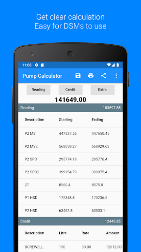 Aplikasi ini membolehkan anda mengira jumlah penjualan pam petrol.Aplikasi ini boleh digunakan oleh DSM dan DSW untuk mengira jumlah penjualan, penjualan kredit dan juga aliran masuk tunai (pendapatan), dan aliran keluar tunai (perbelanjaan) yang mereka buat semasa peralihan di tong petrol.Aplikasi ini juga membolehkan anda berkongsi bacaan dengan orang lain (pengawas, pengedar, dll) sebagai pesanan teks dan dokumen PDF.