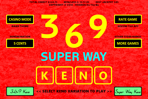 Keep your cash in your pocket and play 3-6-9 Keno and Super Way Keno on your smartphone and tablet devices. Two fun variations of Casino Video Keno are included where both allow you to play with Way Tickets.