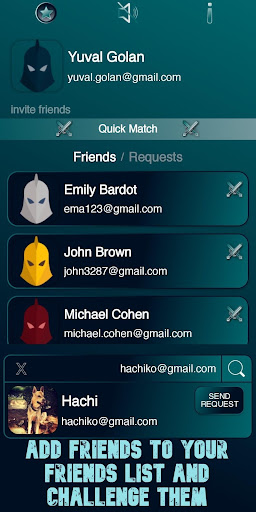 * Tambahkan rakan ke senarai rakan dan bermain melawan mereka.
