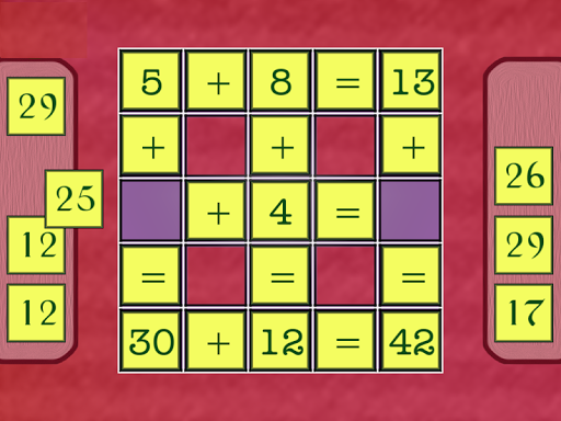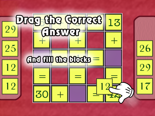 Mengasah kemahiran asas matematik dengan permainan matematik yang mudah ini. Ia mempunyai lebih daripada 49 peringkat di mana kesukaran akan meningkat kerana anda menyelesaikan teka-teki anda. Anda perlu melakukan operasi asas matematik seperti penambahan, penolakan, Pendaraban, devision dan bermodul. Akan ada 5 x 5 grid yang mempunyai nombor di atasnya, juga mempunyai tanda-tanda operasi matematik. Beberapa blok akan menjadi kosong. Akan ada jawapan dalam panel, anda perlu seret jawapannya dan meletakkannya di blok yang betul pada grid. Mengisi semua blok untuk menyelesaikan teka-teki. Anda akan Buka teka-teki baru selepas anda selesai teka-teki corrent.