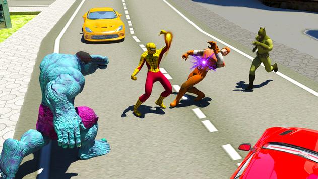 hero and other world super power heroes attacked. These are causing disasters on this grand city and were sent by a mafia of gangsters to take over the control of the city. You as a spider hero stop the disaster in the city and stop the heroes sent by mafia from Vegas city to cause disasters and any other criminal activities in your city. You can choose your player between incredible superhero, incredible monster, incredible superhero Captain, superhero mutant spider, incredible & turtle hero. The most exciting feature of the game is that you can take any car and bike on the road and can drive it to complete your mission.