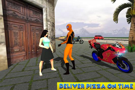 Incredible Spider pizza delivery is an adventurous and thrilling game. Pizza delivery from incredible hero is hard job because spider hero never took the role as pizza delivery boy. This spider pizza delivery bike is designed for the lovers who want to play the role of spider hero pizza delivery boy. We are providing you a chance to be a fantastic spider pizza boy in pizza delivery game. This delivery duty is tough and also a challenging job with advanced sports bike pizza delivery. In this simulator drive super spider bike to complete pizza deliveries in time that you have never seen before in any other pizza delivery games. You deliver pizza in different areas like home, school, building and offices. Pizza delivery game is full of fun and thrilling environments. Challenging missions are waiting for you.