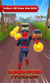 Avengers Spider Hero Man Infiniy is an amazing running game for Android. Run along the craziest scenarios in the City. Fun and addictive subway game with realistic physics and hardcore gameplay. Drag to jump or slide and to move left or right. Avoid hitting trucks, buses and subway trains. Run around the city, subway, forest and beach and gather all the coins you can.