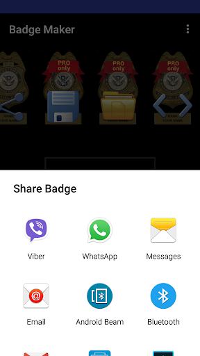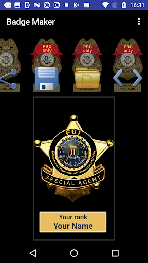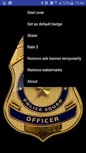 With Badge Maker you can choose and show custom badges, such as custom police badge, security badge, detective badge, fire fighter badge etc. After badge selection, you can conveniently set chosen badge as default, when you start the app next time.