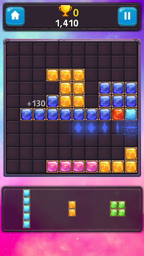 Block Puzzle Gems classic is inspired by diamonds and jungle. The goal is to drag and drop block in order to create and destroy full lines on the grid table both vertically and horizontally. If there is no position for the given block on the screen, the game will end. Don't forget to keep space for the blocks from filling the screen.