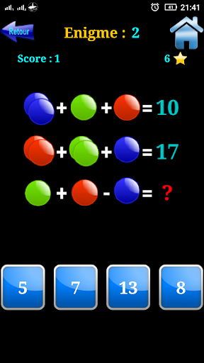 Aplikasi pendidikan, yang membantu anda membiasakan diri dengan pengiraan mental sambil bersenang-senang untuk menyelesaikan persamaan yang terdiri dari tahap tahap yang mudah dengan menandakan mata pada setiap jawapan yang betul, mata ini membolehkan anda mengecas rizab bintang anda yang memberi anda akses kepada anda Enigmas dalam bentuk sistem persamaan dengan simbol yang anda perlukan untuk mencari nilai yang tepat.
