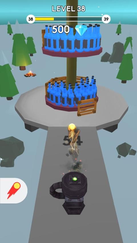 Hit the cannon bomb into the bottles to break them. Try to find the best way to complete each level.