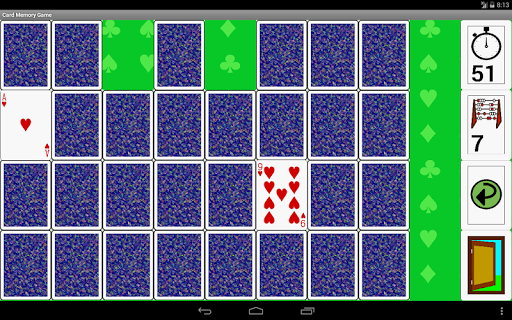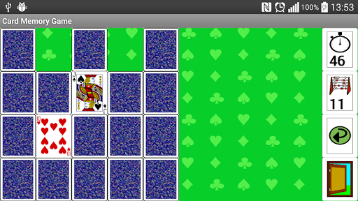 Card Memory Game is a card game in which cards are laid face down on a table and two cards are flipped face up on each turn. The object of the game is to turn over pairs of matching cards. The game is also known as Memory or Pairs. In our version of the game player can use decks of 20 or 32 playing cards. Cards are laid face down in four rows of five or eight cards each. In each turn player chooses two cards and turns them face up. If they are of the same rank and color (ace of hearts and ace of diamonds, king of clubs and king of spades, …) player wins the pair and cards are removed from the table. The game ends when the last pair is picked up. Time is recorded and added to leaderboard.