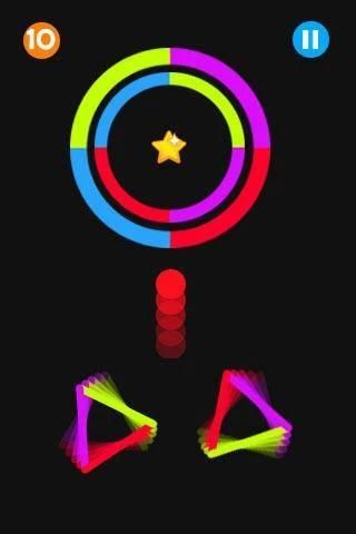 Tap the ball carefully and pass through each obstacle. The ball will switch color with some powerups! The ball will switch colors when passing through the Color Switcher patterns. Jump into the wrong Color and you'll have to start over. Very Addictive Color Switch Neon game!