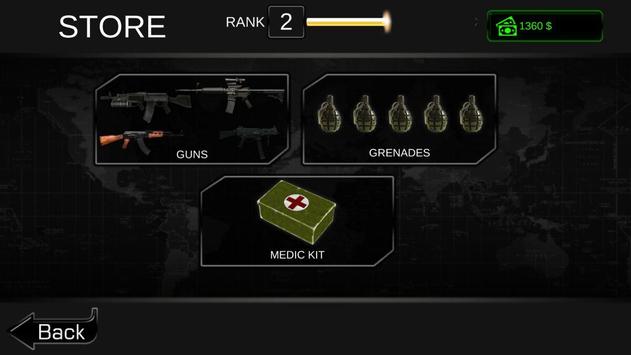 To be prepare for the battle is half victory so collect the coins by completing the mission and purchase the weapons for the deadly mission. You variety of weapon to purchase from the store like Sniper, RPG, M16, MG42, AK47, Grenade and knife.