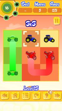 Connect vehicles to draw lines. Pair all vehicles, and cover entire board to solve each puzzle. Lines will break if they cross or overlap!