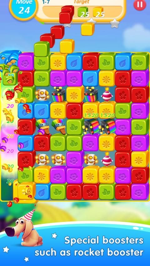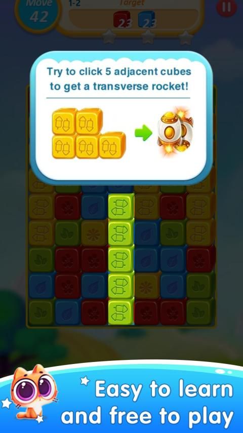 Tap to play! Match 2 or more adjacent cubes of the same color to create a blast. Complete the missions set at the beginning of each level and collect different items to win.