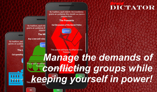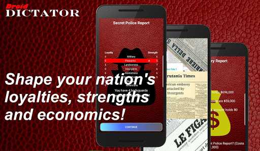 Droid Dictator is a free, casual game of Machiavellian political strategy, loosely based on the classic 1983 Sinclair ZX Spectrum 8bit game by Don Priestley, where you play the newly 'elected' dictator of the Republic of Erutania.