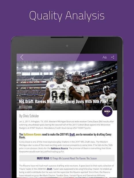 Control how you view Ravens content by setting up alerts and sorting through categories, while intuitive menus make it easy to toggle between feeds from Ebony Bird and throughout FanSided for the freshest news.