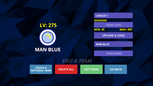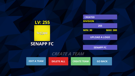 Anda mempunyai keupayaan untuk membuat pasukan anda sendiri, memuat naik logo tersuai, pilih tahap dan nama untuk pasukan baru.