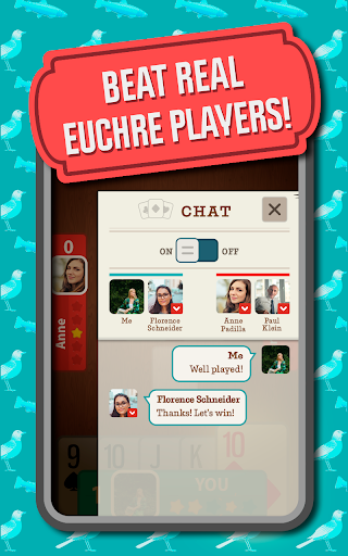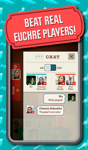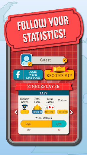 - Kad penipu dalam talian Euchre mempunyai tahap ifficulty 3D: Pilih antara mudah, sederhana, dan keras.