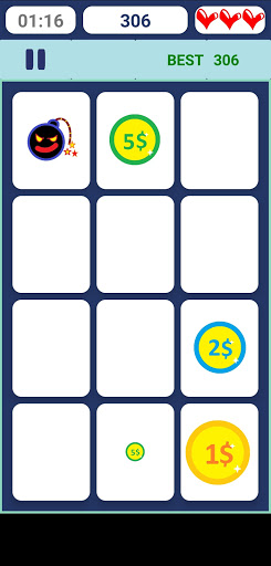 "Bersembunyi Duit syiling" adalah permainan untuk refleks anda. Terdapat tiga mod permainan permainan arcade, klasik dan tidak berkesudahan menawarkan variasi peraturan pemarkahan.