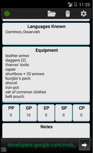 - Spell book with spell attack bonuses, spell DC, and spell slots tracking