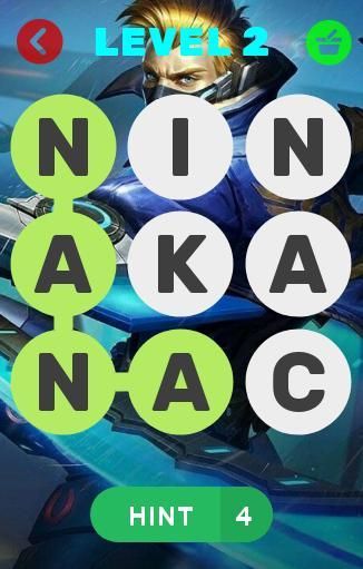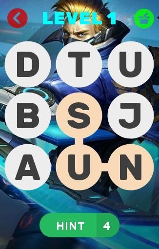 Find Hero Name in the most popular mobile game in the world Mobile Legends 2018, in order to play the game, there will be a random alphabet on the field and you have to guess which alphabet contains mobile legends hero name in it. It's pretty easy, you can go to any pattern to get the hero name except diagonal pattern.