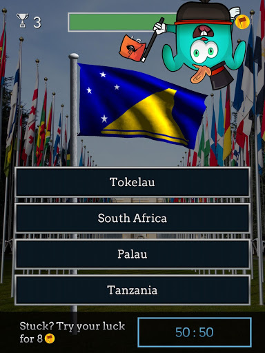- Mengambil bahagian dalam pertempuran kuiz multiplayer dan meningkatkan tahap anda untuk menunjukkan kepada semua orang anda peminat bendera sebenar.
