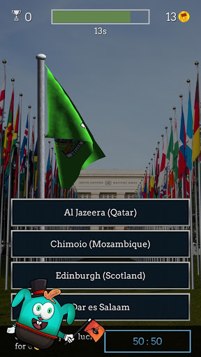 Bersaing dalam talian dengan peminat bendera dari seluruh dunia atau bermain di luar talian dan bekerja pada skor tinggi peribadi anda!Bendera dari seluruh dunia sedang menunggu untuk mengenali dan menghafal mereka, bendera semasa serta bendera sejarah dan bendera perbandaran dan ketenteraan.