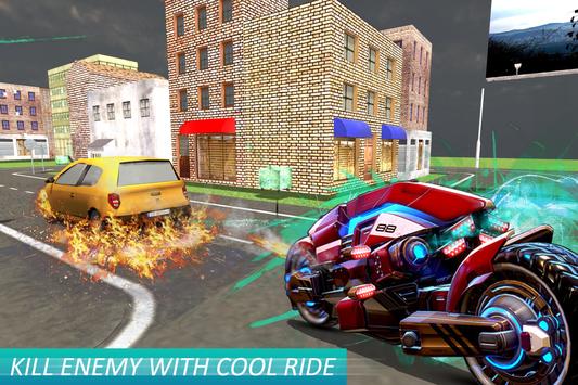 With Flying Robot Moto Simulator at your hand are you ready for surprise attacks, intricate tactical maneuvers and the many sneaky tricks your rivals have for you? Race against evil cars in this Futuristic Robot Game with your flying Harley Davidson. Ride on the highway in rush hour traffic .This daring ride game lets you ride classic moto. Destroy the world in your racing moto robots because we know you love Futuristic robot games, death racing games, furious racing, police car racing and traffic racing tron rider games. Realistic Flying Physics of flying moto and take control of an intelligent flying mech robot.