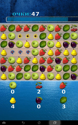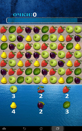 Anda perlu mengumpulkan tiga buah atau lebih buah yang sama, sementara ia dapat dikeluarkan, baik secara mendatar dan secara menegak. Gerakkan buah, jika perlu, dengan gerakan jari anda. Untuk ini, buah-buahan bergerak ke arah yang berbeza, baik ke kanan dan ke kiri, serta ke atas dan ke bawah.