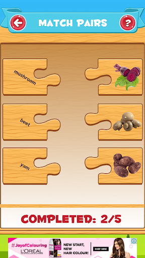 "Buah-buahan dan sayur-sayuran" adalah permainan pendidikan percuma untuk kanak-kanak. Ia adalah permainan yang bagus, mudah, menyeronokkan, dan berwarna-warni untuk kanak-kanak dan kanak-kanak! Anak-anak anda boleh menonton gambar-gambar buah-buahan dan sayur-sayuran yang indah, semuanya sambil belajar nama mereka.