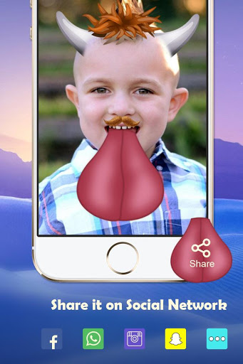 ► Pilih daripada lebih daripada 50 alat peraga wajah yang realistik dan lucu seperti As;