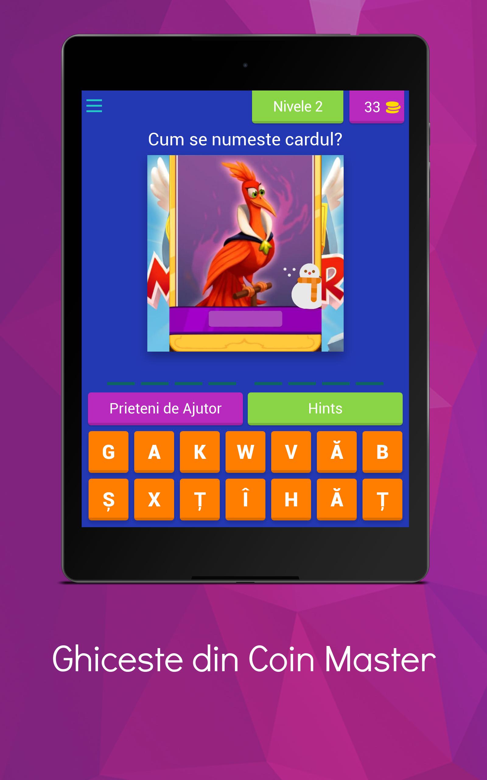 Coin Master - Game - Free Cards este o aplicatie facuta pentru jucatorii Coin Master, aceasta aplicatie este bazata pe intrebari din joc , iar cine va raspunde corect va fi rasplatit cu carduri noi pentru seturile lor si nu numai..