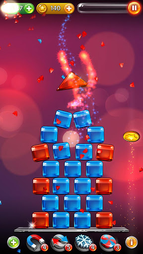 Your aim is to break all the blue blocks and to save as many red blocks as possible.