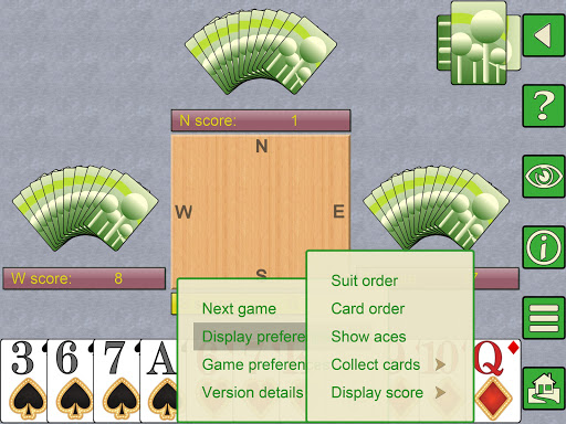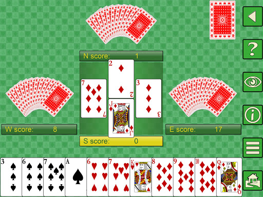 * pelbagai tahap permainan.Setiap pemain komputer boleh mempunyai kekuatan dari pemula kepada pakar.Sokongan untuk tiga variasi permainan kad lulus yang berlainan.bergerak.