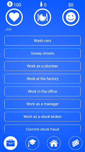 Anda mendapat aLebih banyak lagi wang jika anda kacau dengan barangan haram, tetapi anda menghadapi masalah dengan polis.Sebaliknya, anda boleh memanjat sekolah dan kerjaya langkah satu di orang kerja.Anda perlu memperbaiki kerjaya anda dengan melakukan pelbagai profesi, tetapi membuat wang lebih mudah jika anda boleh meneka pasaran saham dengan baik.