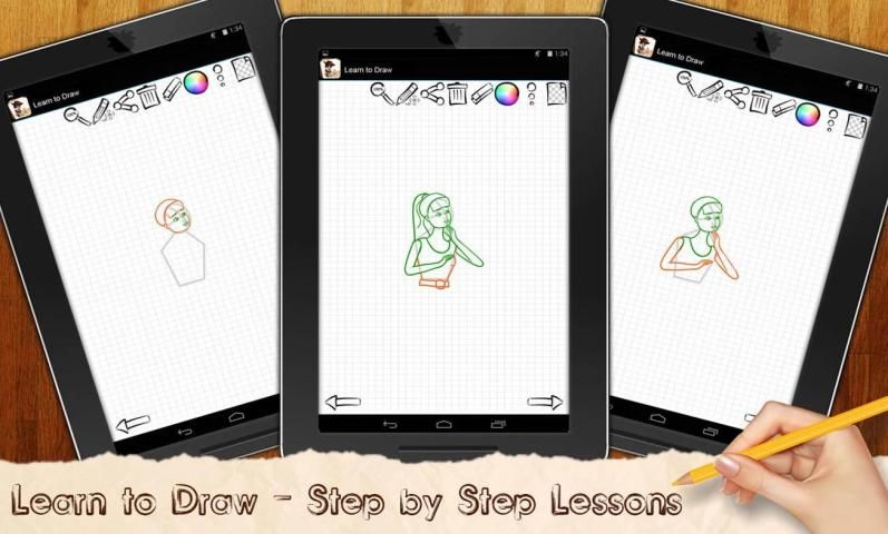 Install the application on your phone or tablet and get detailed step-by-step lessons on drawing everything that you like.