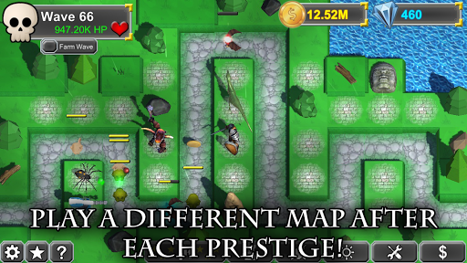 - Mainkan 5 yang berbeza labirin. Cari strategi dan menara yang paling optimum untuk masing-masing!