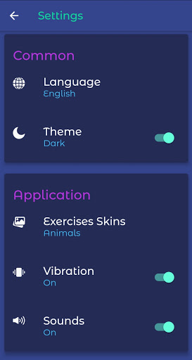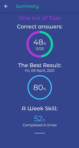 Each exercise gives you experience points (%) and is displayed on the main application screen.