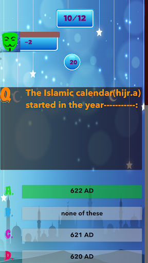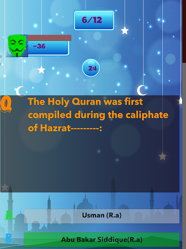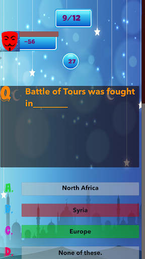 This Islam History game helps user to sharpening their knowledge and senses, help them to prepare for exams or tests which are based on all Aspects of Islamic History and helps them to increase their knowledge. This app targets people of all ages, even children could enjoy tests created by this app and could enhance their Islam History Knowledge. This app can be used for the preparation of School, Collage and Universities quizzes and also for entry tests.This app contains cool features like coloring the buttons green if the answer is correct otherwise coloring the button red because the answer is wrong. It provides multi-player functionality which enables you to play against the players around the world. It contains good graphics and less Ads. This app is extremely efficient, it is developed in such a way so that it could run smoothly in any device.
