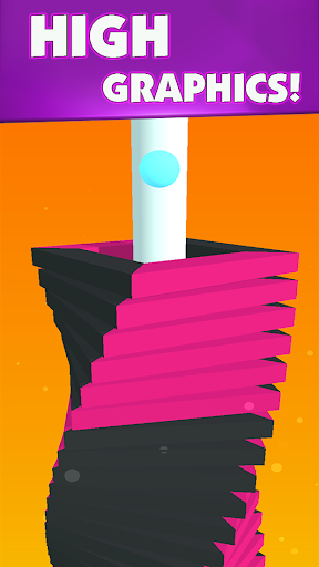 Press and hold on the screen and let the ball go down without touching the obstacles! Hold as long as possible to make combo and break the black blocks. Let the ball fall down from the colorful helix stacks.