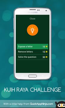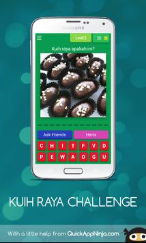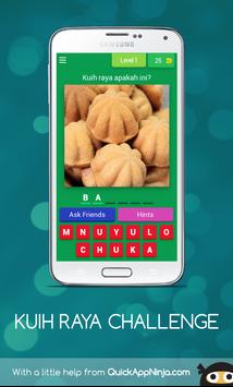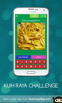 Aplikasi Permainan Kuih Raya Challenge ini menguji pengetahuan dan kecekapan anda dalam meneka nama-nama kuih raya melalui gambar yang akan ditunjukkan.