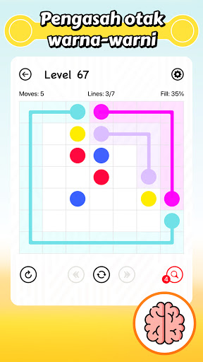 Lined adalah permainan teka-teki yang mudah! Matlamatnya adalah untuk menyambung ✏️ semua mata berwarna yang sama ⚫️ 🔴 🔵. Walau bagaimanapun, terdapat cabaran. Barisan satu baris tidak boleh diluluskan atau merentasi garis warna lain.