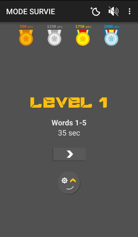 Find as many words as possible, the level of difficulty increases with less and less time to find the code word at each level crossing.