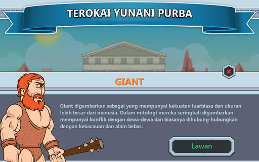 - Di setiap peringkat kelima terdapat makhluk mitos yang perlu anda tewaskan. Dengan satu klik pada ikon raksasa, anda boleh membaca teks yang menyediakan maklumat asas tentang makhluk dalam permainan matematik ini.
