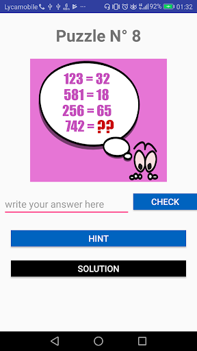 Math puzzles increases your logical thinking. Objective of the game is to find patterns hidden in the puzzle in order to arrive at the solution. This game helps in enhancing your