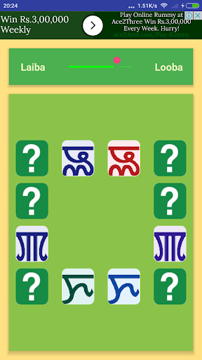 Memori permainan "Match" yang sesuai dengan dua abjad manipuri.Ini mempunyai banyak pilihan.