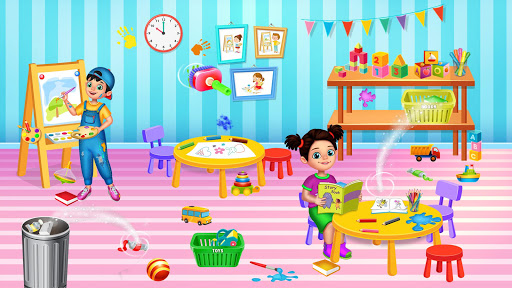 Barang-barang kelas adalah merosakkan dan bertaburan. Susun semula perabot bilik darjah, buang sampah, bersihkan tempat lumpur dan letakkan objek di tempat yang betul. Membersihkan bilik darjah dengan kemahiran pencuci dan pembersihan yang terbaik. Tukang kayu! Membaiki perabot yang rosak seperti meja dan kerusi. Masuk ke bilik kelas lukisan di mana semua karya lukisan dan pewarnaan seni dilakukan. Bersama-sama dengan membersihkan, mencuci dan merekabentuk bilik anda juga boleh mewarnakan watak yang berbeza dalam buku lukisan. Gunakan semua alat permainan pembersihan dan pencuci seperti pembersih vakum, mop, penyapu, berus dan span.