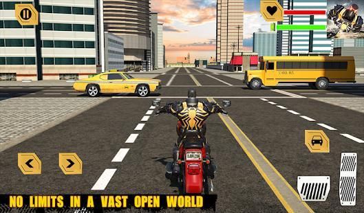 As a mutant spider robot superhero US country gives you an power to snatch and ride any car. You can go near to any car/ bike/ bicycle and snatch it. You do have some super powers which help you to run fast like bullet speed.