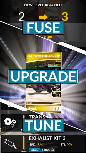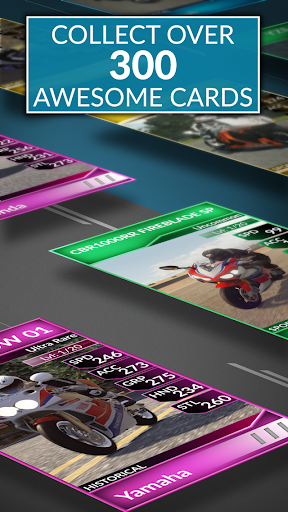 • Collect the bikes of your dreams. 120 models from Aprilia, Bimota, Ducati, Honda, Kawasaki, KTM, MV Agusta, Suzuki, Triumph and Yamaha... and more to come. • Tune and level your cards. Install new exhausts, suspensions, tyres and other mechanical components to build the ultimate racing machine. Fuse cards together to level up.