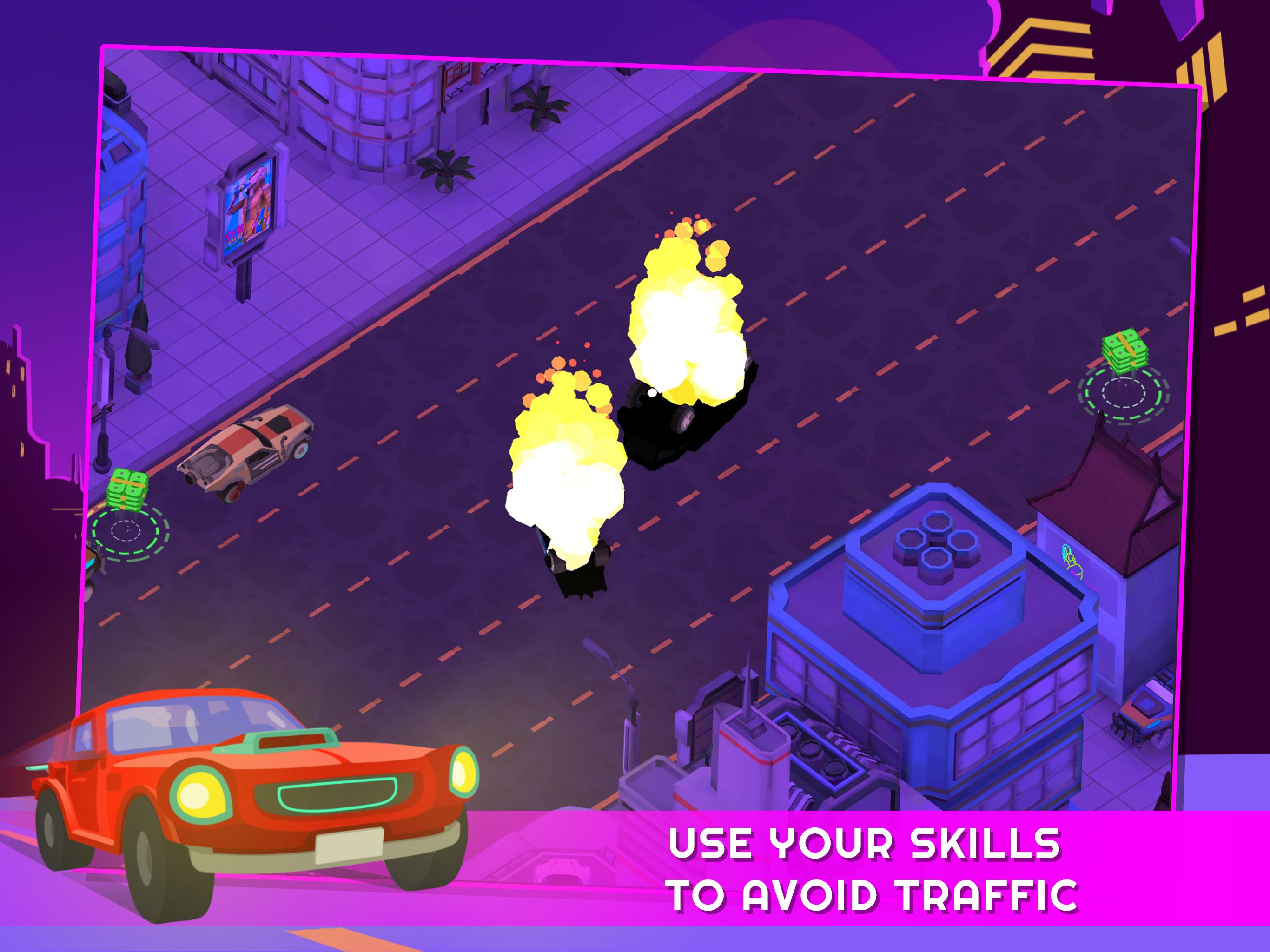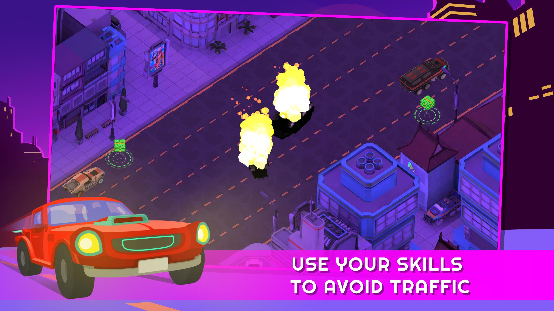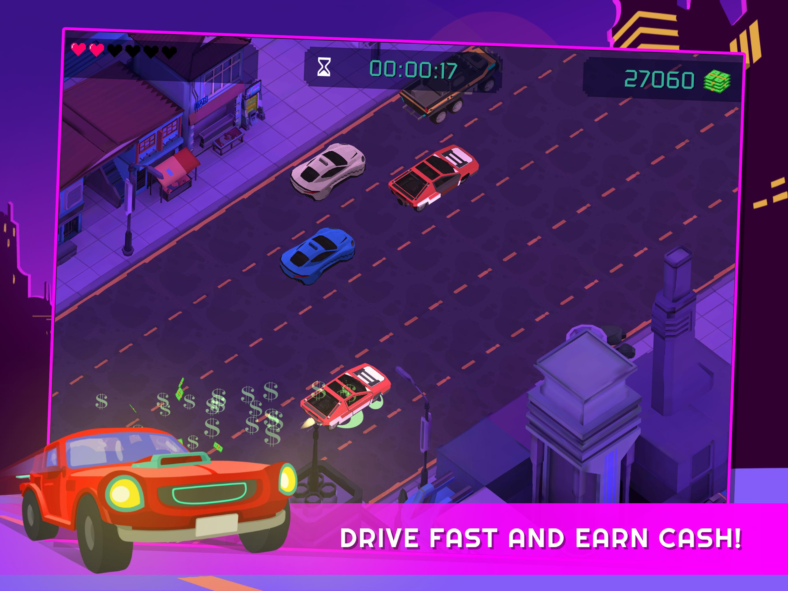 Get ready to push the pedal to the metal in Nitro Driver DX; a fast-paced driving game for speedsters! Swipe left and right to swerve the busy streets of Future City and collect cash. Use your riches to fill your garage with cooler and better rides; the more cars you own, the more cash you'll make. Upgrade your vehicles to increase their health and efficiency, then drift your way to the top of the leaderboard!